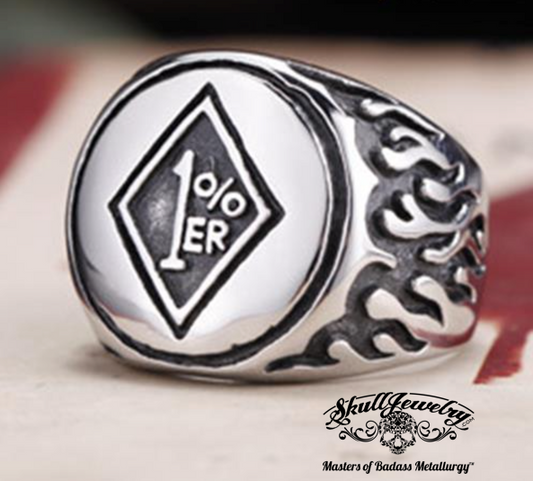Buy American 🇺🇸Outlaw Biker 1%ER Biker Ring With Flames on the Sides (#302)