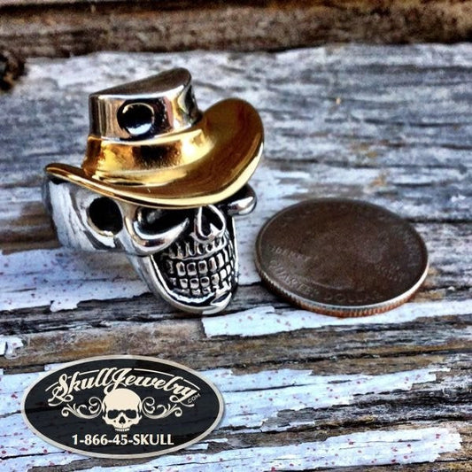 BLACK FRIDAY DEALS • LIVE NOW 🔥Carry On - Gold Cowboy Hat Skull Ring (#496)