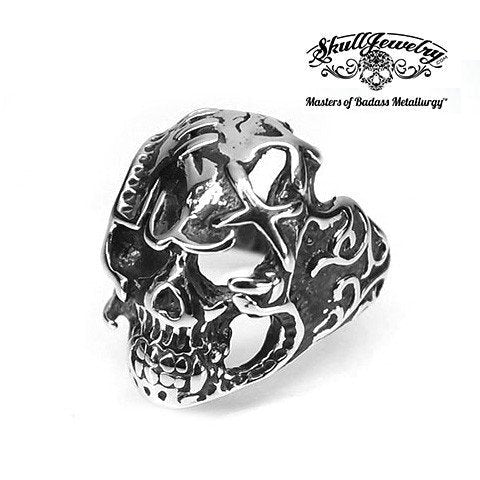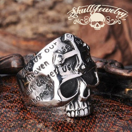 BLACK FRIDAY DEALS • LIVE NOW 🔥Lords Prayer Skull Ring with Cross on Forehead (#355SILVER)