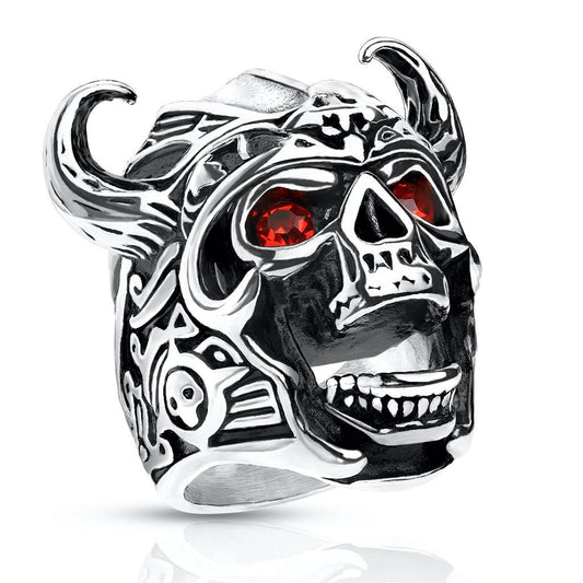 BLACK FRIDAY DEALS • LIVE NOW 🔥Medieval Viking Warrior - Ring w/ Horns & Red Eyes (#723)