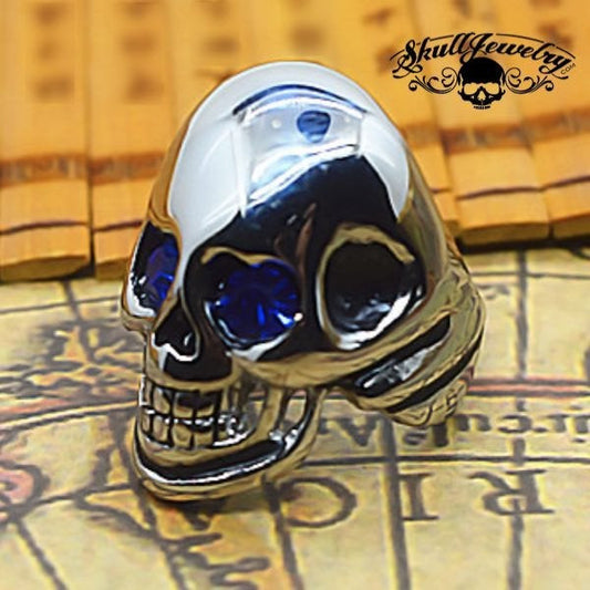 BLACK FRIDAY DEALS • LIVE NOW 🔥'Roadhouse Blues' Skull Ring with BLUE Eyes (#457)