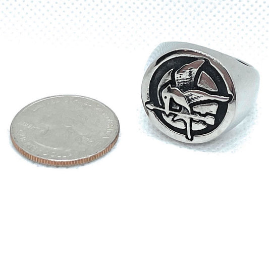 BLACK FRIDAY DEALS • LIVE NOW 🔥'Mockingjay' Symbol of Rebellion Bird ring (#689)