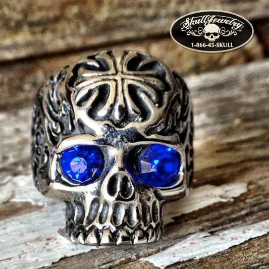 BLACK FRIDAY DEALS • LIVE NOW 🔥The Story In Your Eyes - Blue Eyes Skull Ring (#462)
