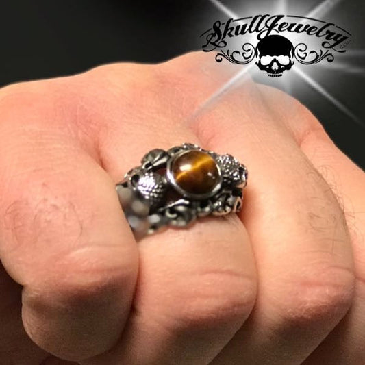BLACK FRIDAY DEALS • LIVE NOW 🔥Tigers Eye Stainless Steel Skull Ring (#732)