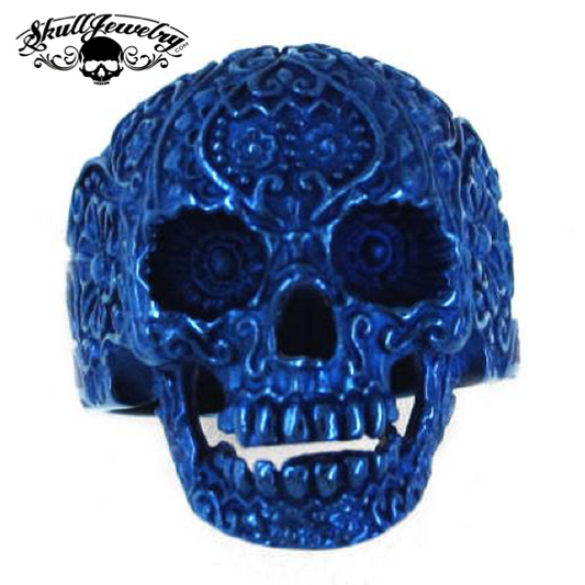 BLACK FRIDAY DEALS • LIVE NOW 🔥Vintage BLUE Flower Skull Ring (#476)