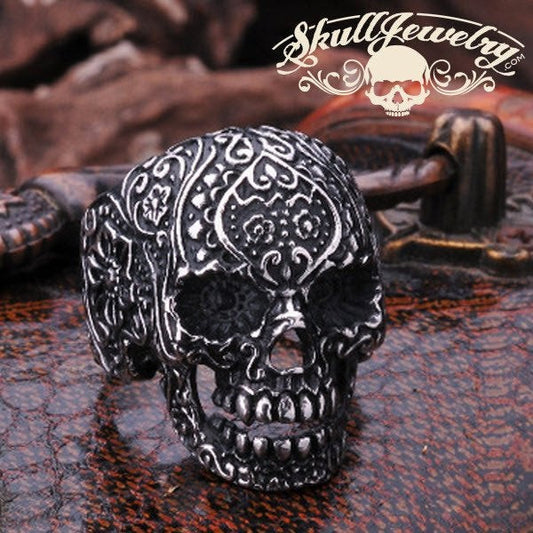 BLACK FRIDAY DEALS • LIVE NOW 🔥Vintage Black Eyes Flower Skull Ring Stainless Steel (#032)