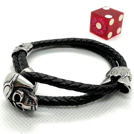 BLACK FRIDAY DEALS • LIVE NOW 🔥Triple Skull 'Punisher' Leather & Stainless Bangle Bracelet (#852)