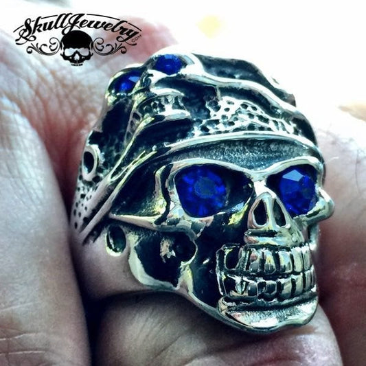 BLACK FRIDAY DEALS • LIVE NOW 🔥Behind Blue Eyes - Two Faces / Blue Stone Eyes Skull Ring (#274)