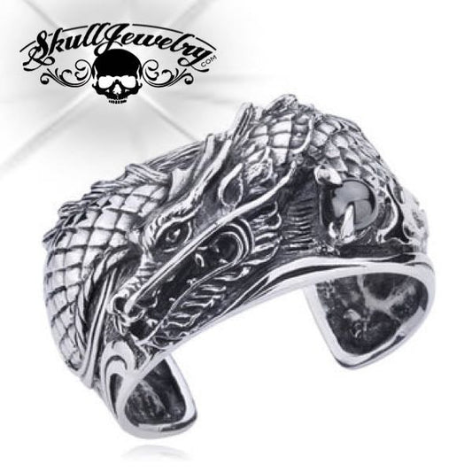 BLACK FRIDAY DEALS • LIVE NOW 🔥Big, Bold & Heavy Dragon Bangle Bracelet w/Red Orb (#926)