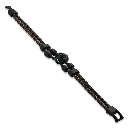 BLACK FRIDAY DEALS • LIVE NOW 🔥Back In Black - Brown Leather Bracelet w/Black CZ Eyes (#ba056)