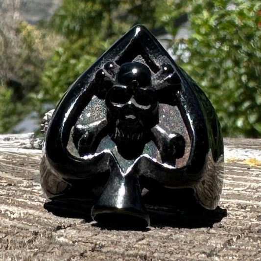 BLACK FRIDAY DEALS • LIVE NOW 🔥BLACK 'Death of Spades' Big & Bold Spade Ring With Skull & Crossbones (#671black)