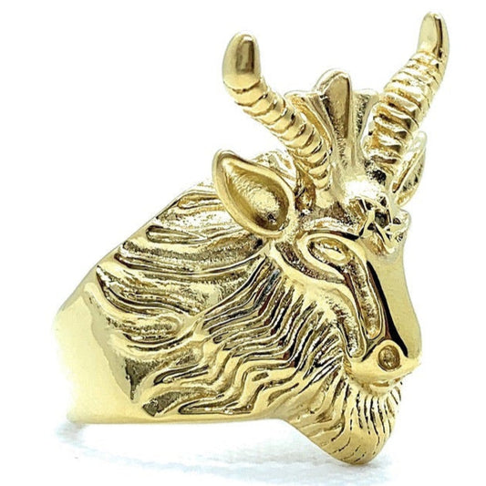 Horned Fury (Gold) Goat Head With Horns Biker Ring (#268Gold)