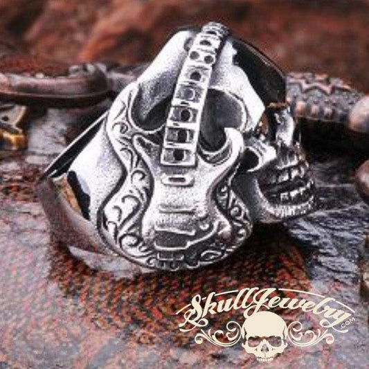BLACK FRIDAY DEALS • LIVE NOW 🔥Guitar Hero - Rock & Roll Skull Ring with Black Zircon* Eyes (#475)