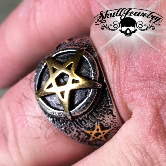 Gold-Tone Old School Stainless Steel Skull Ring (#706)