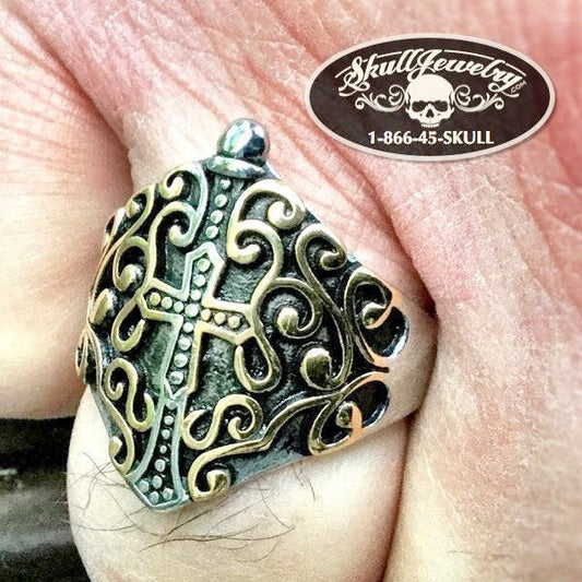 BLACK FRIDAY DEALS • LIVE NOW 🔥Kiss An Angel Good Mornin - Gold and Stainless Steel Cross ring (#491)