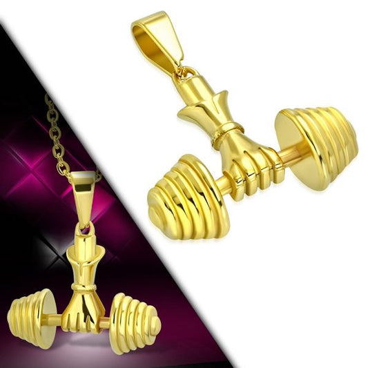 BLACK FRIDAY DEALS • LIVE NOW 🔥Gold-tone 'Deadlift' Dumbbell Pendant (p421Gold)