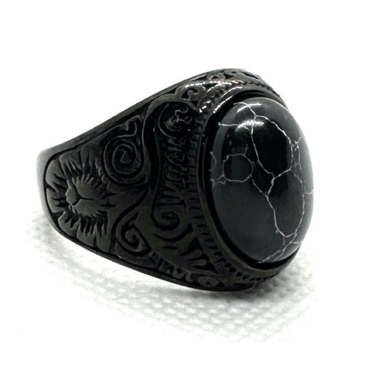 BLACK FRIDAY DEALS • LIVE NOW 🔥Black Hawk - Stainless Steel Black Turquoise Ring (#735)