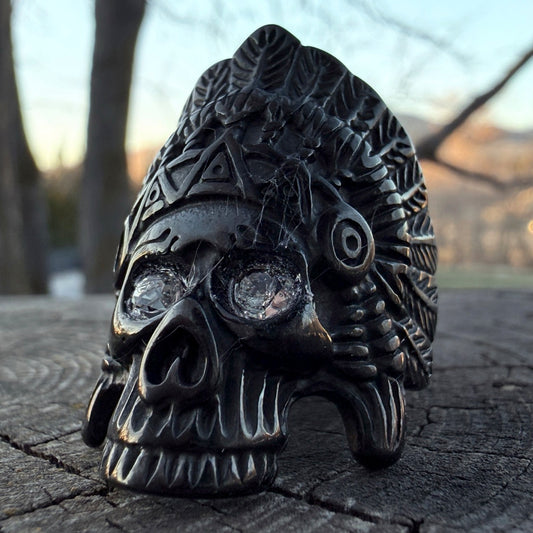 Apache Headress - Skull Ring w/ Black Gemstone Eyes - (610)
