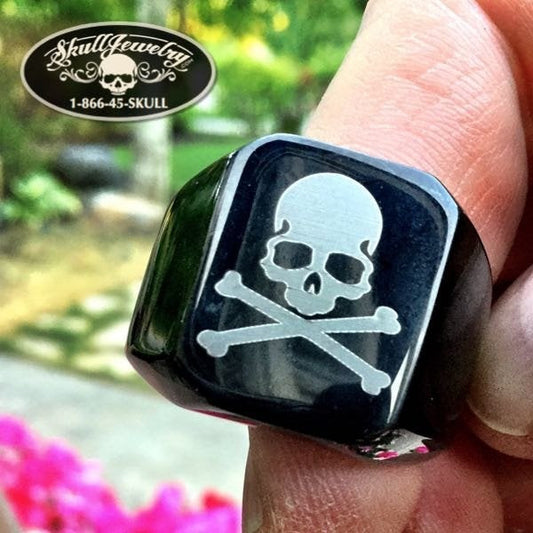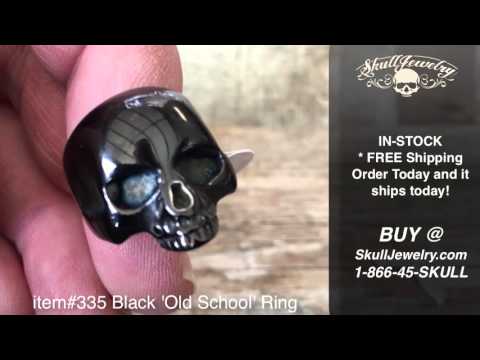 Keith Richards Inspired 'OLD SCHOOL' Black-Tone Skull Ring (#397Black)