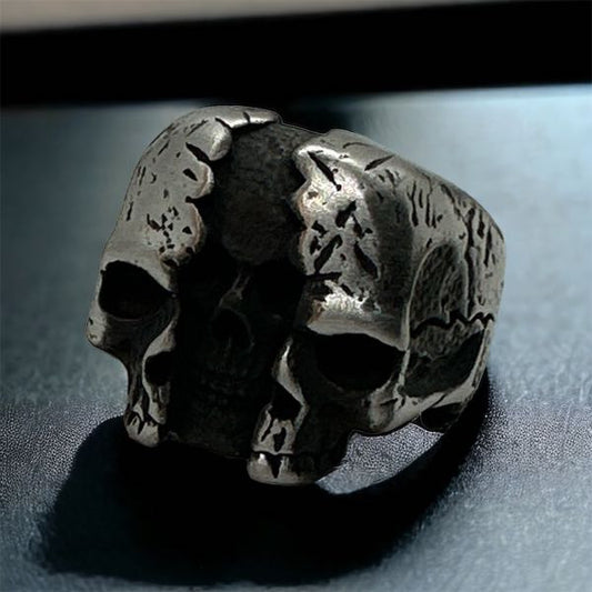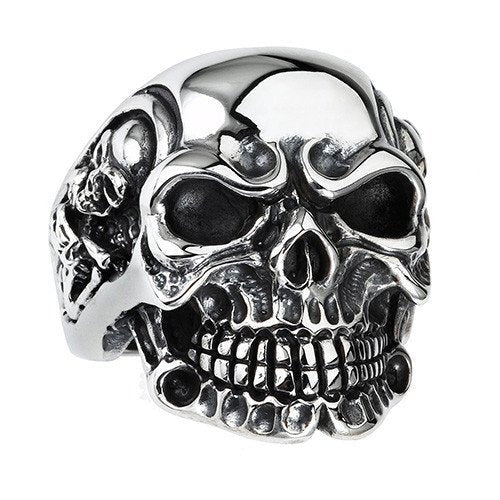 Buy American 🇺🇸Heavy Biker Skull Ring With Side Skeletons (#010)
